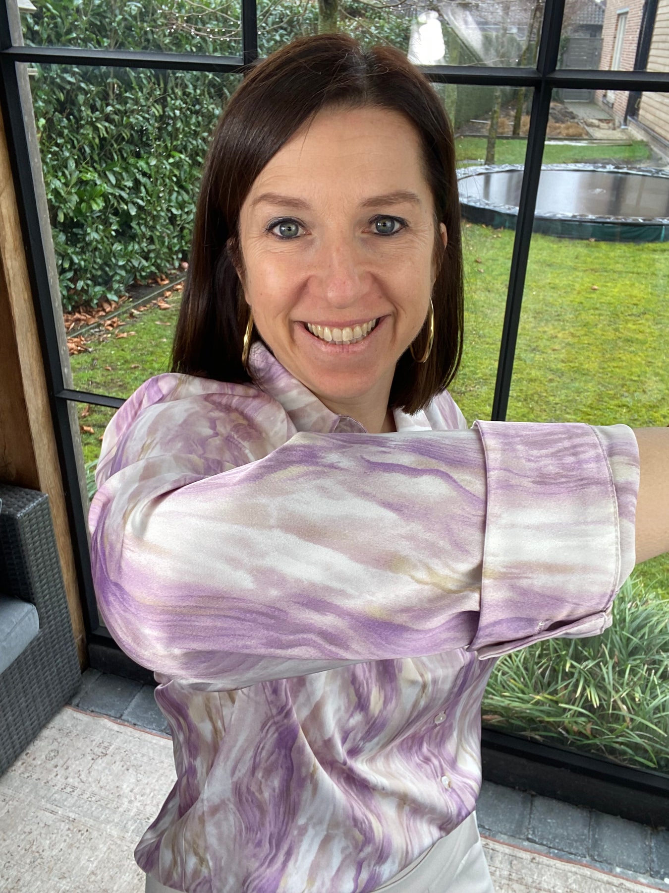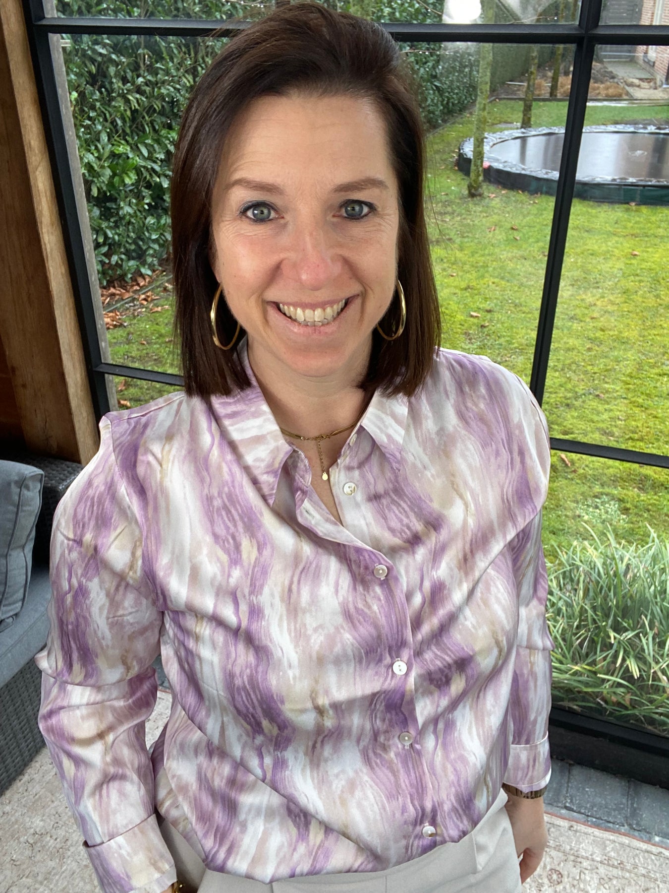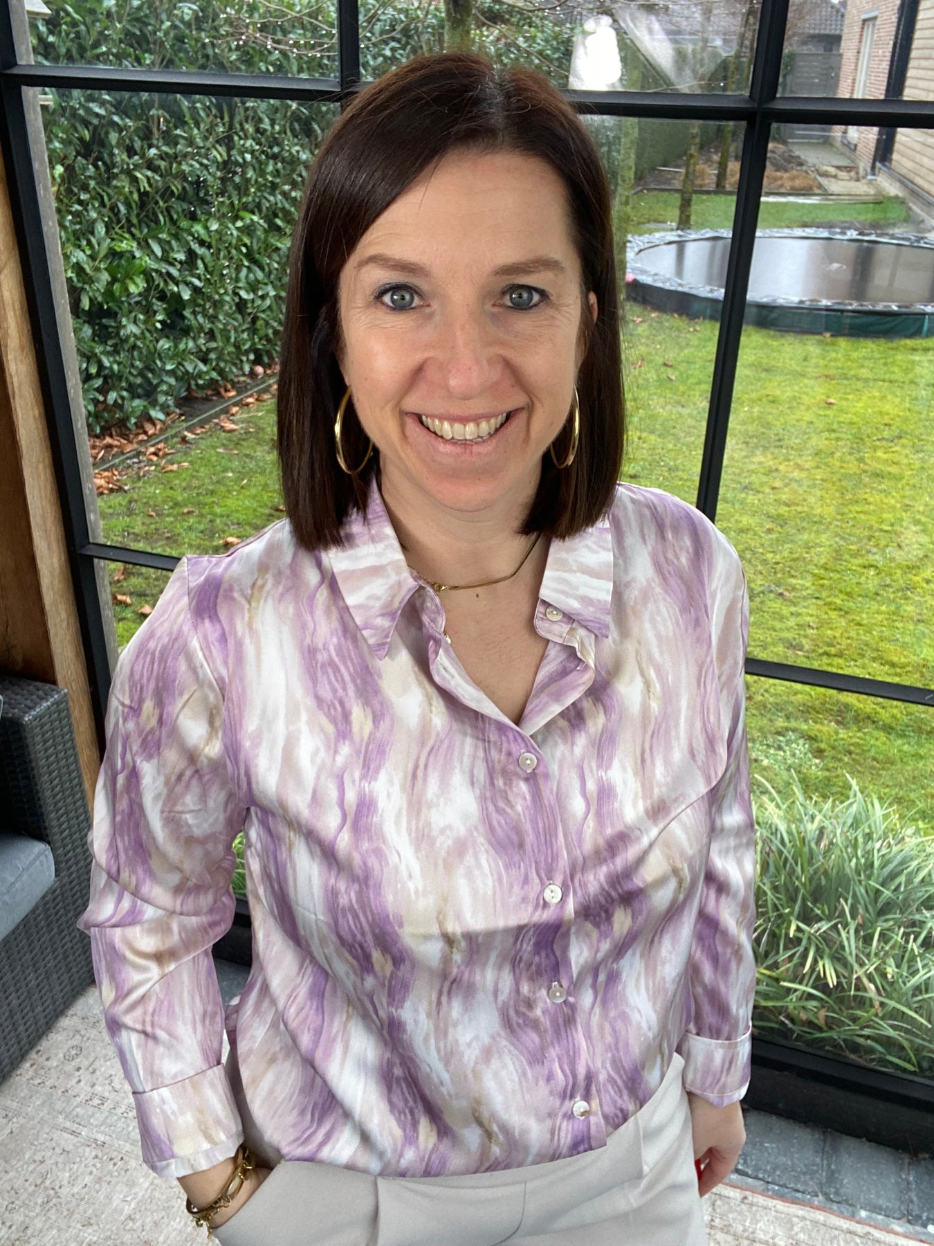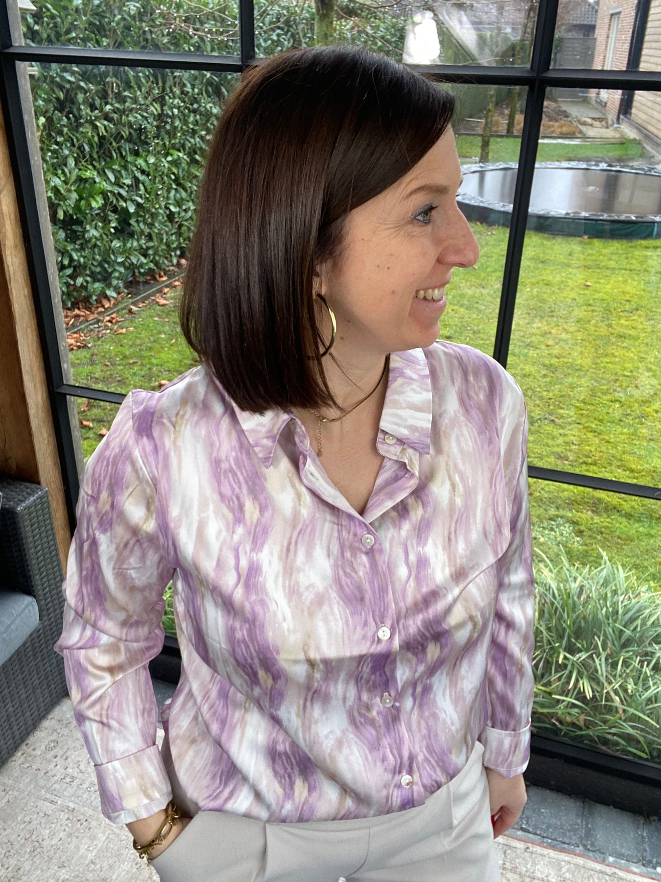 Prachtige gevlamde lila blouse