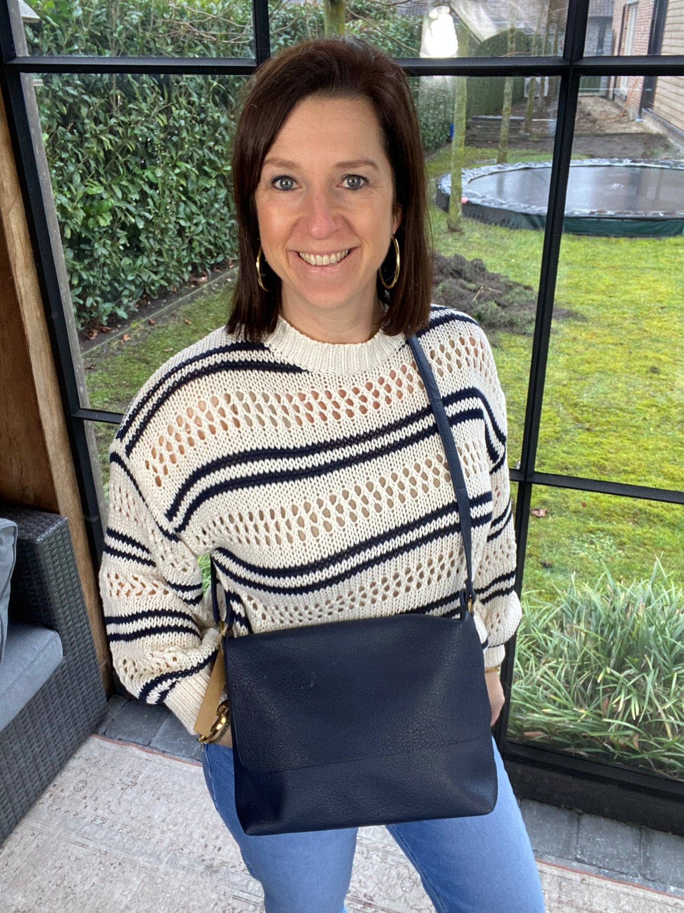 Algemene prijs 39,50Mooie handige donker blauwe handtas met flap