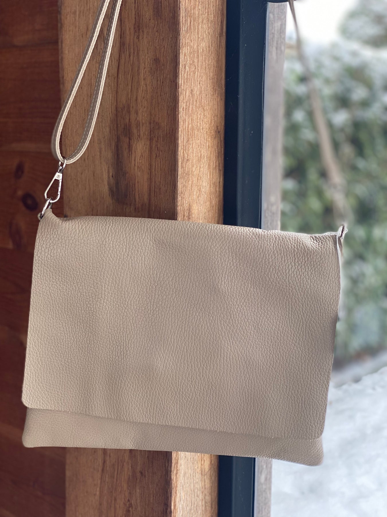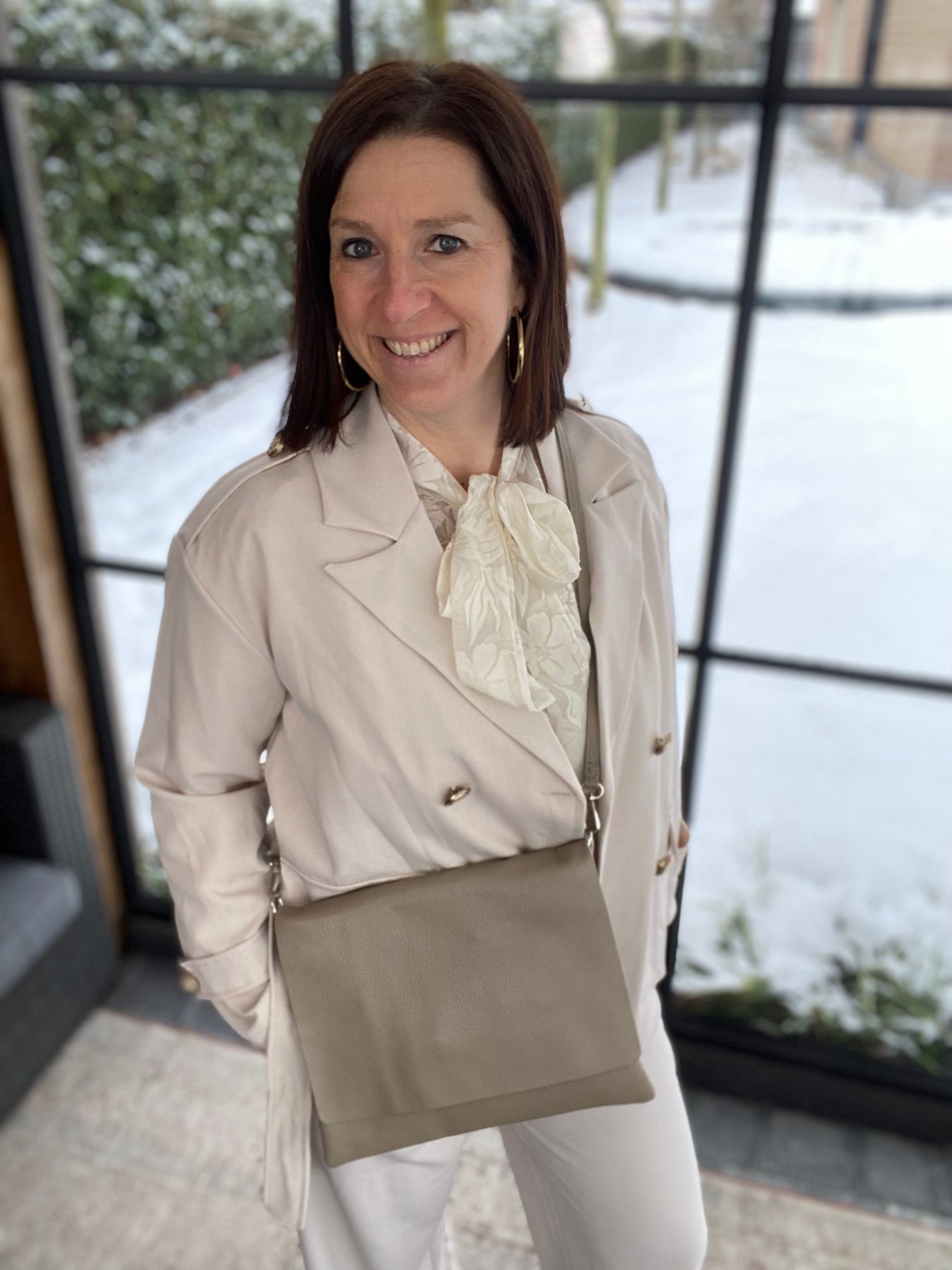 Algemene prijs 45,00Mooie handige taupe handtas met flap
