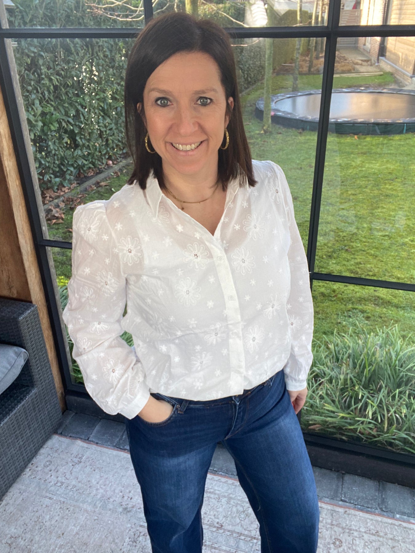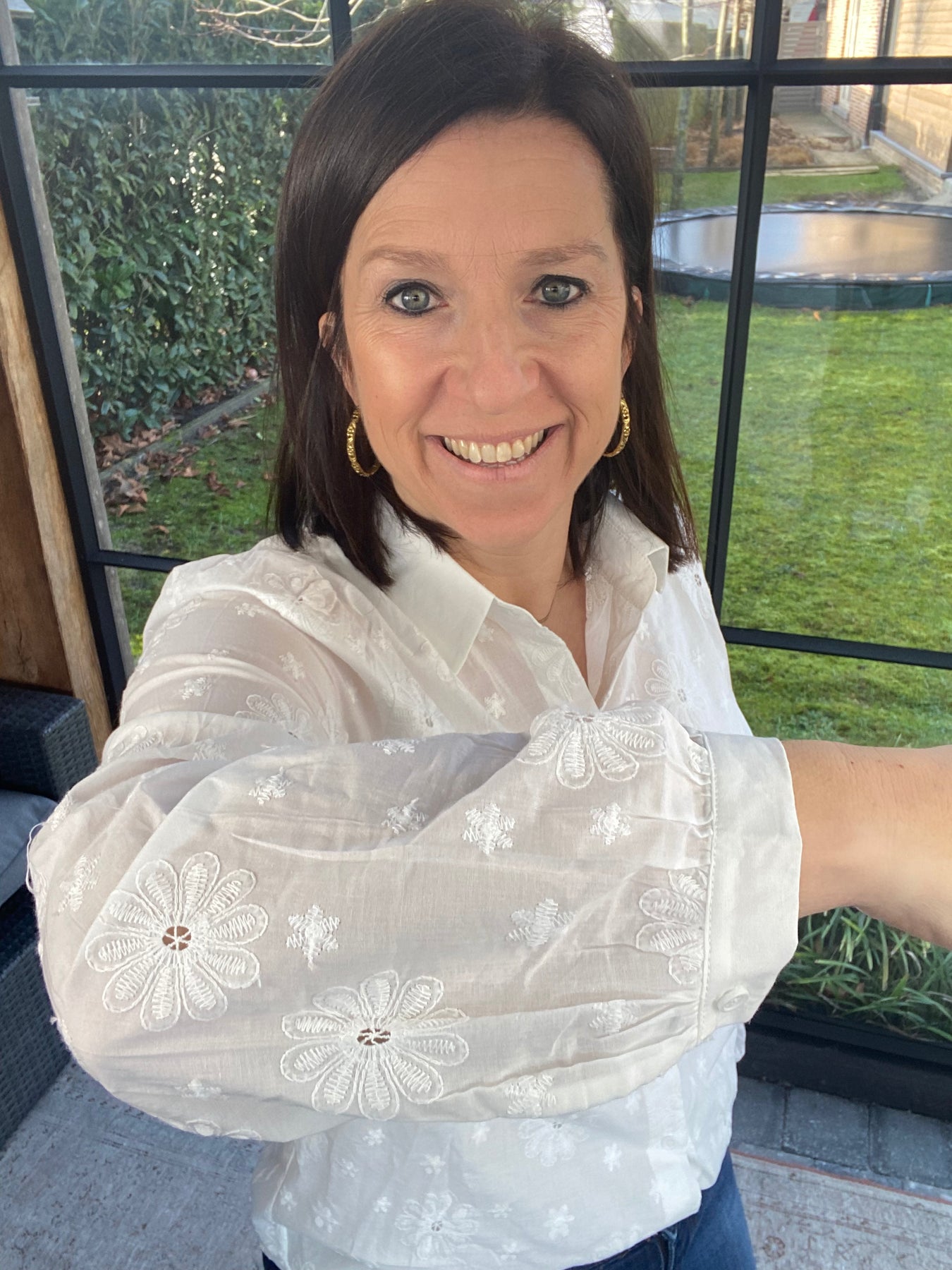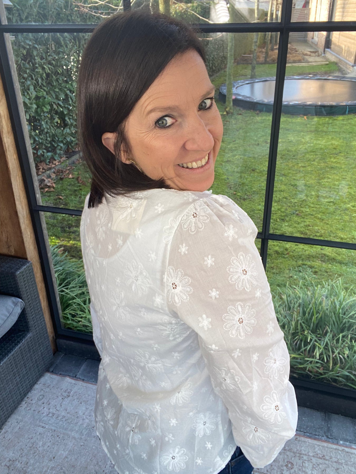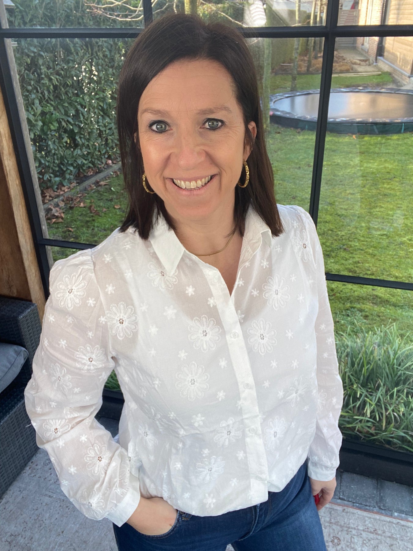 Prachtige witte blouse met bloemen broderie