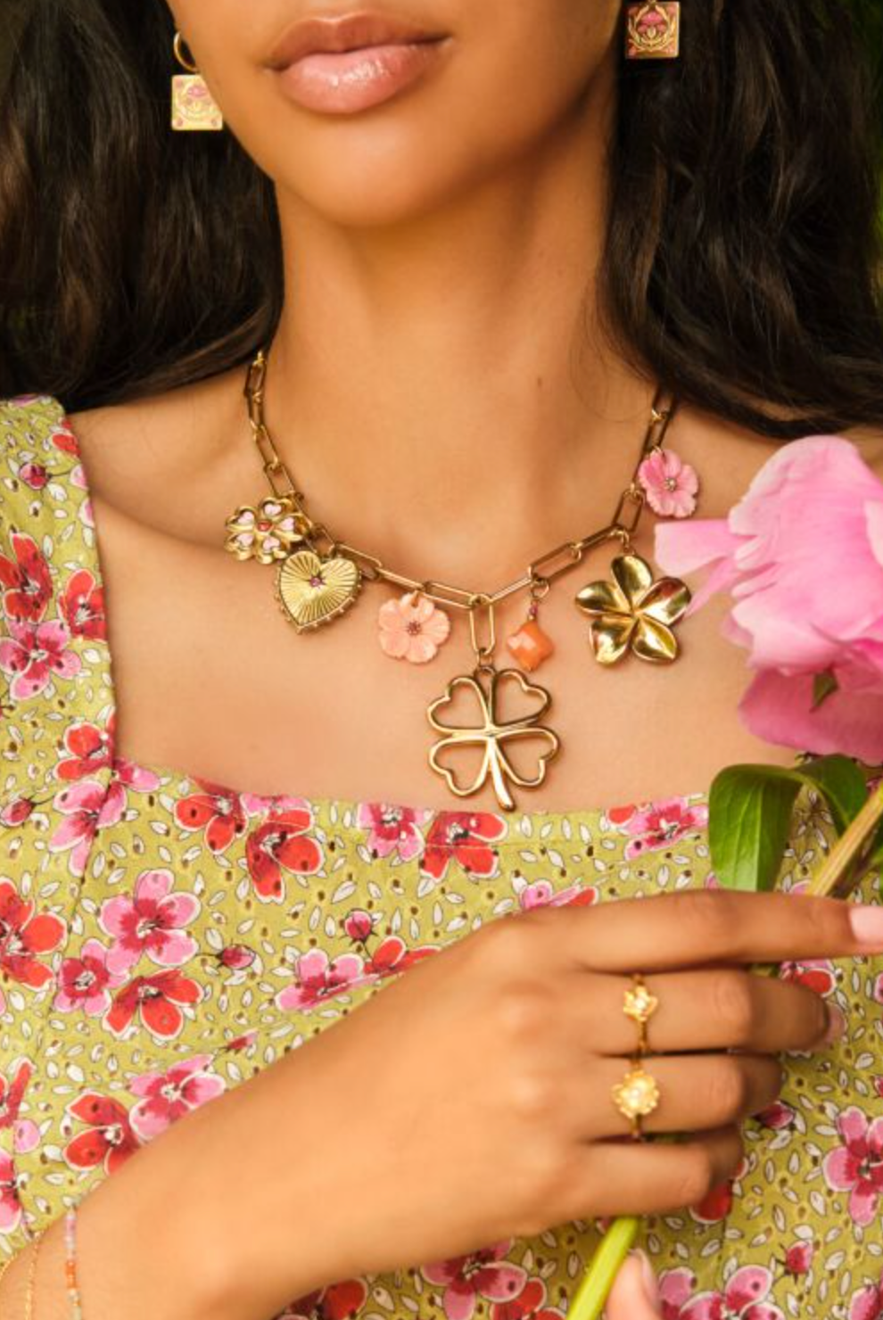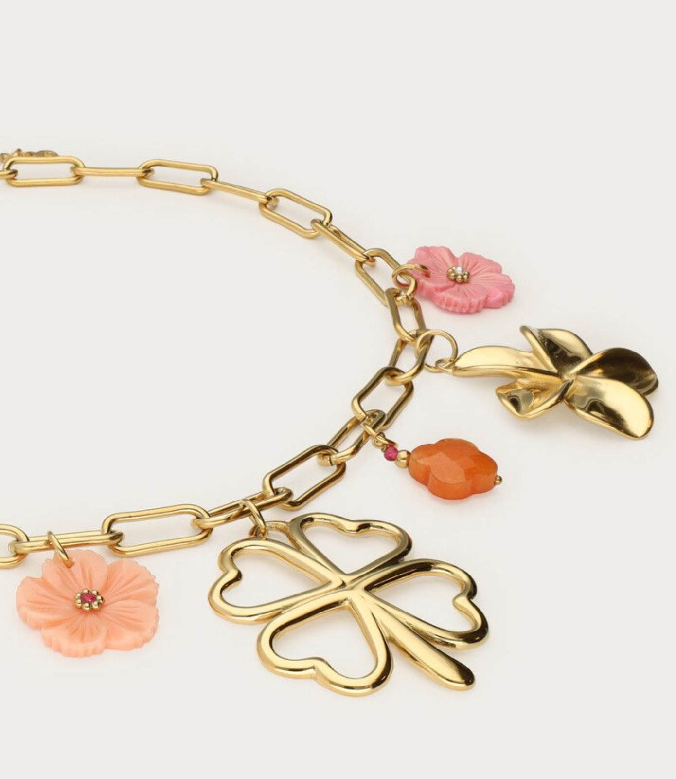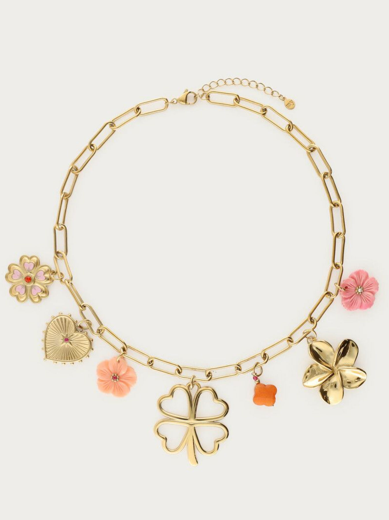 Mooie bedel ketting van My Jewellery met klaver en bloemen
