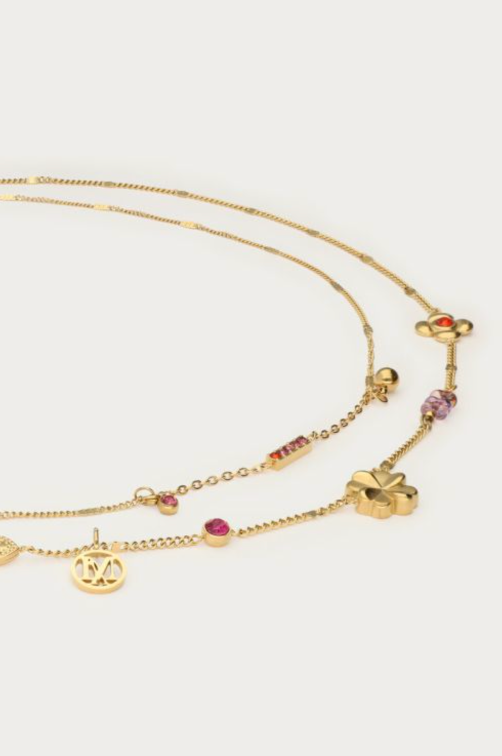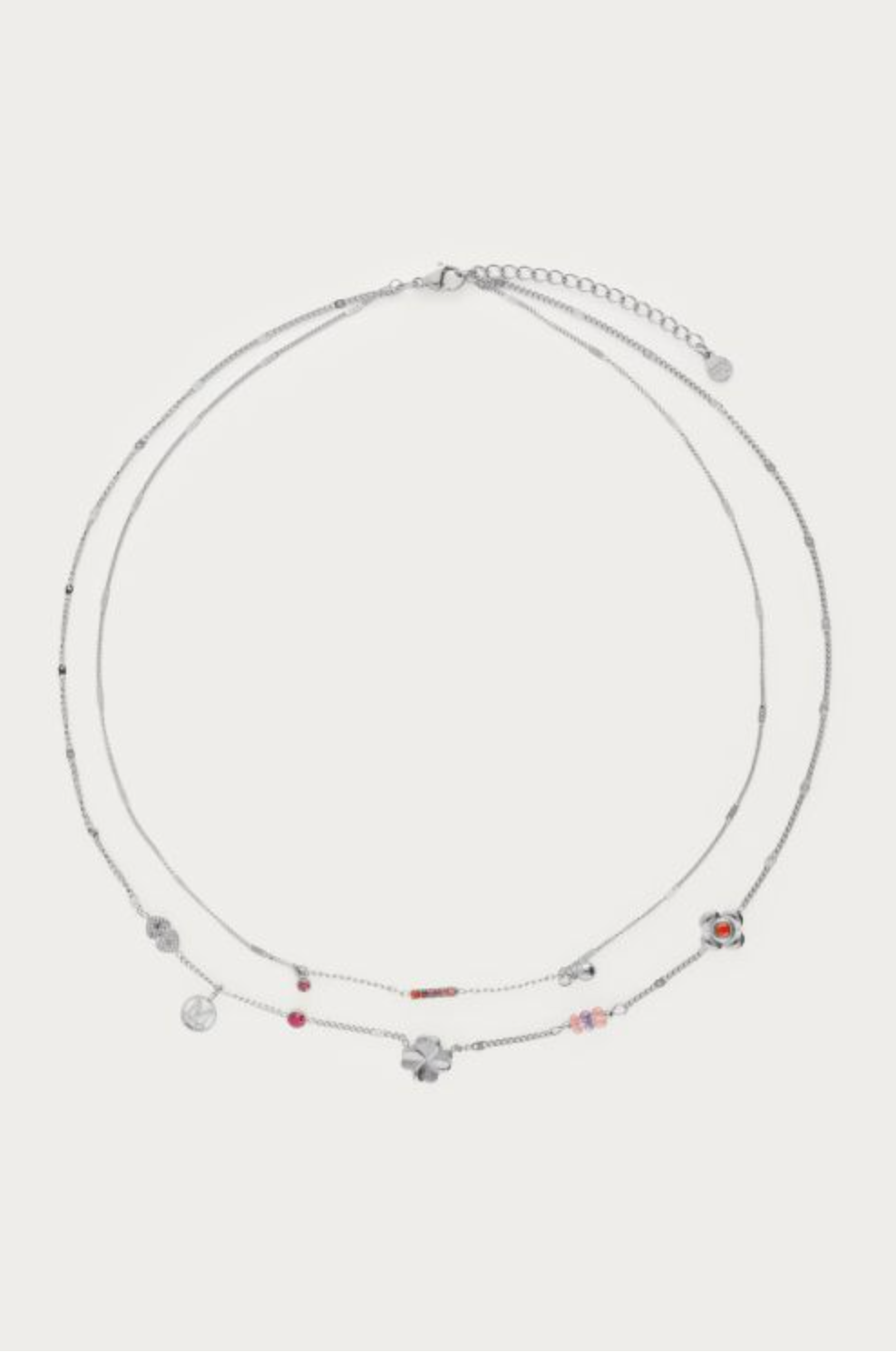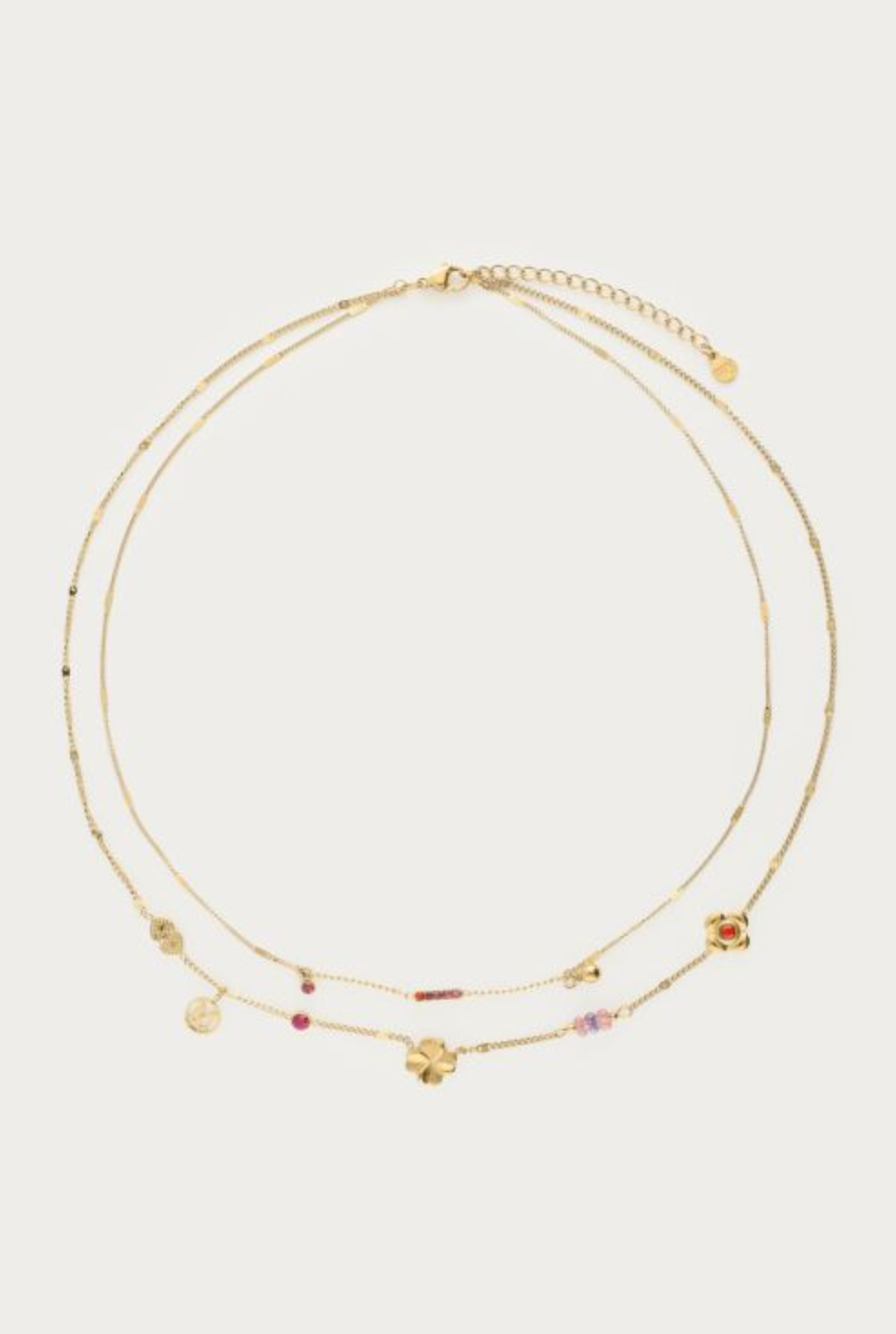 Dubbele ketting met roze bedels "dreams come true"
