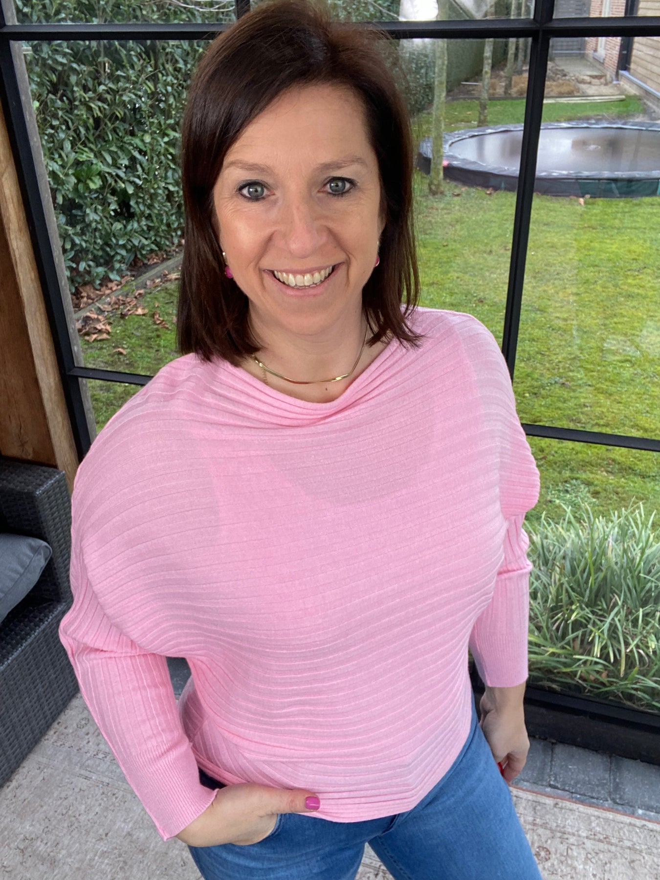 Leuk roze truitje met ribbelmotief