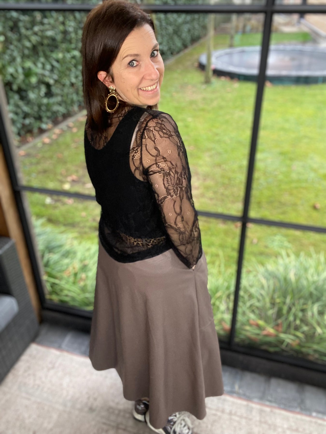 Prachtige taupe rok in lederlook
