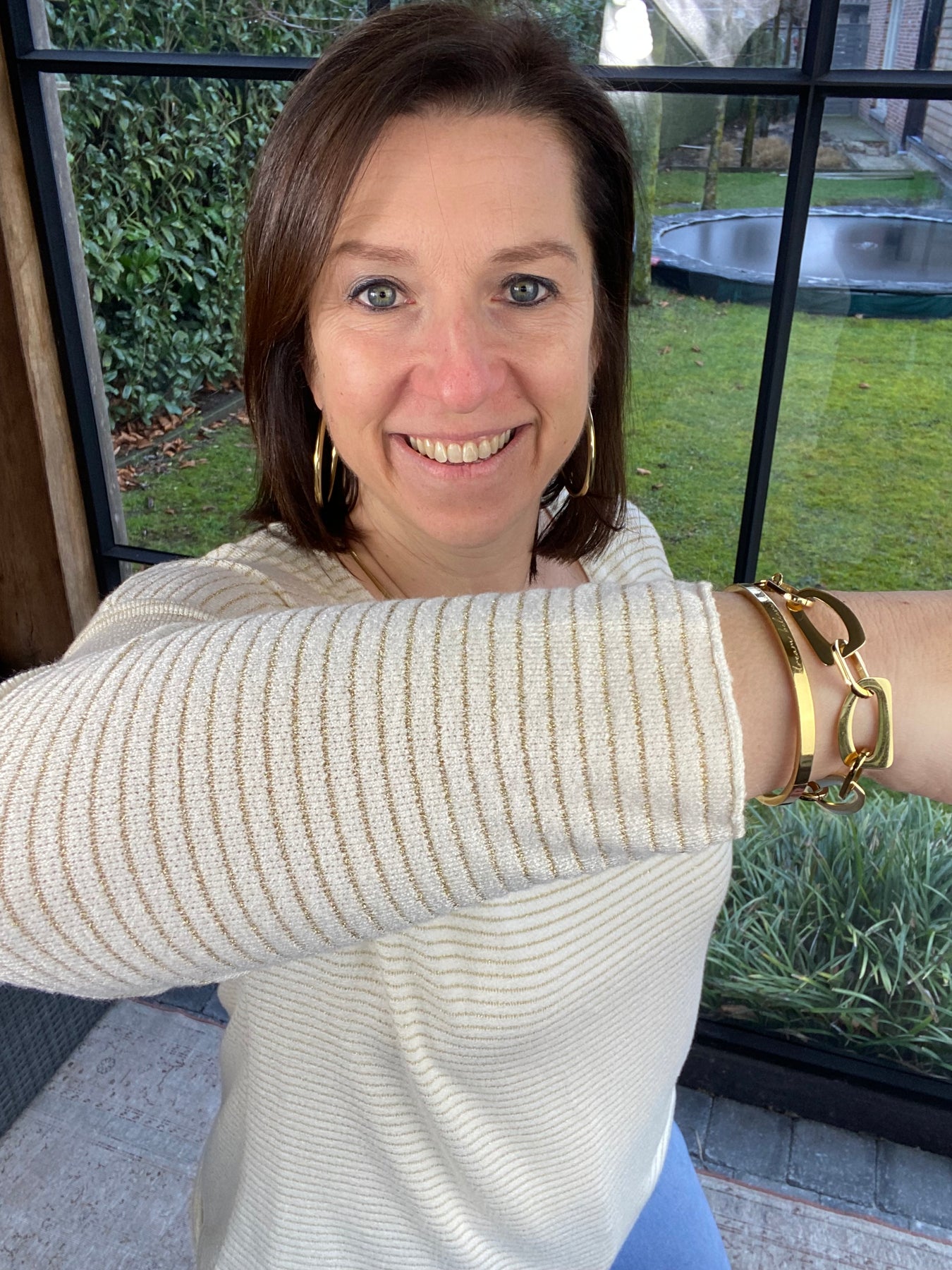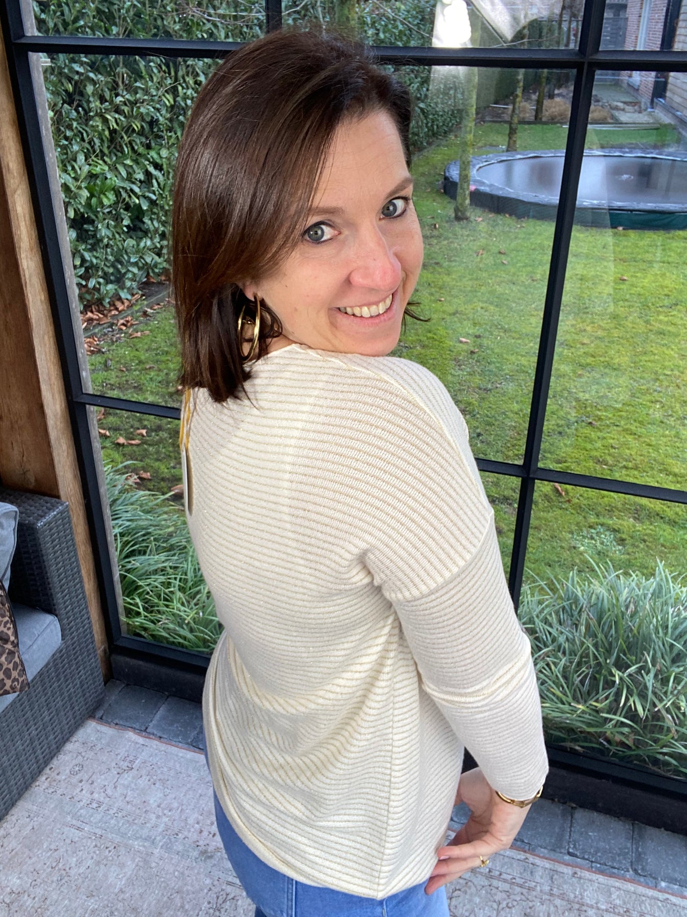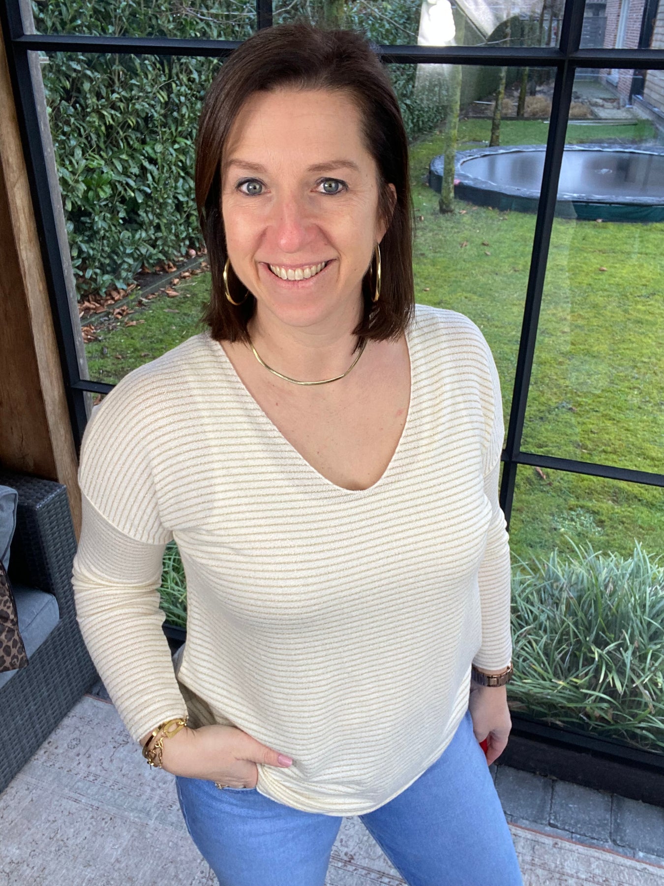 prachtig ecru T-shirt met goudkleurig streepje