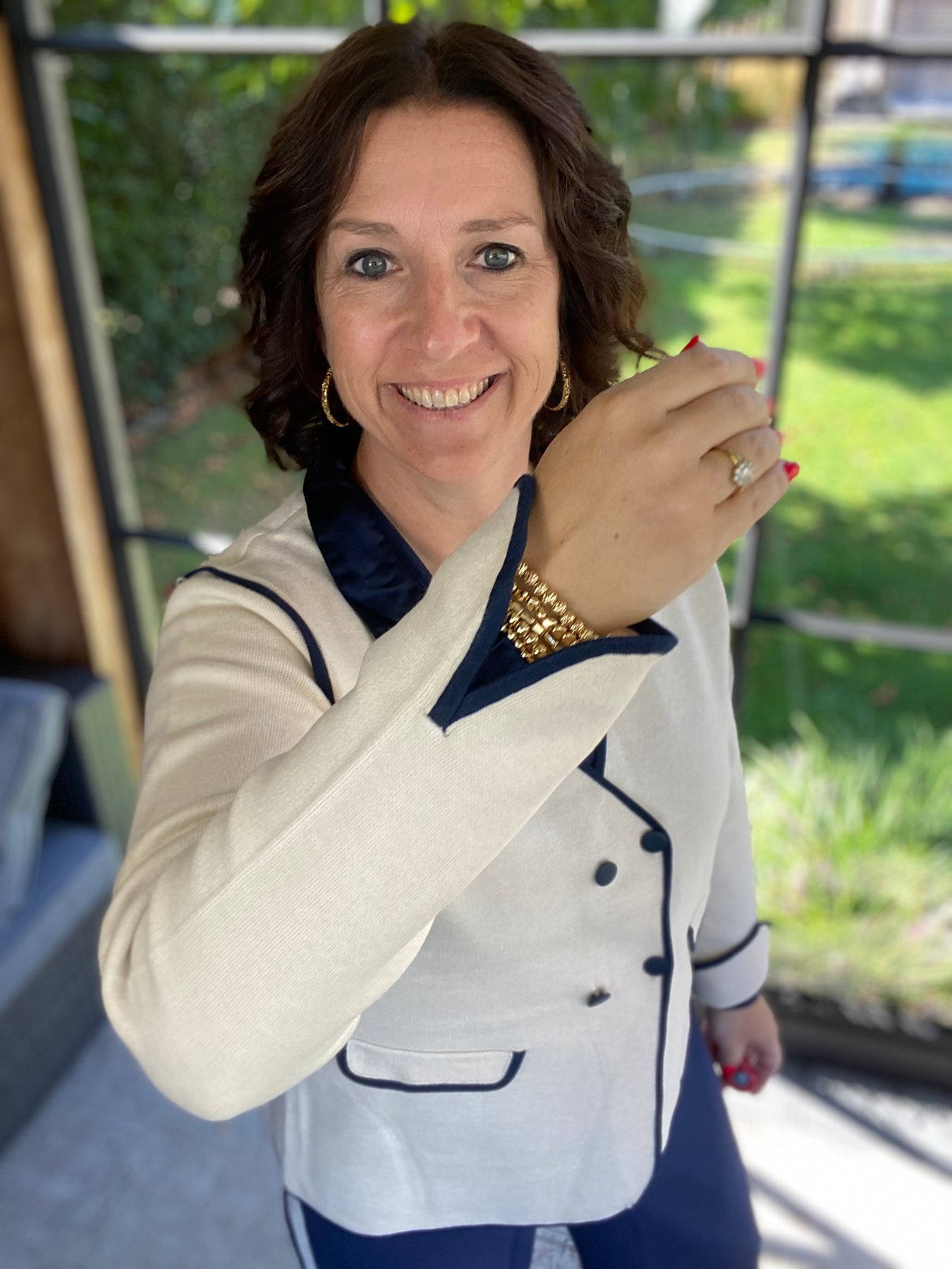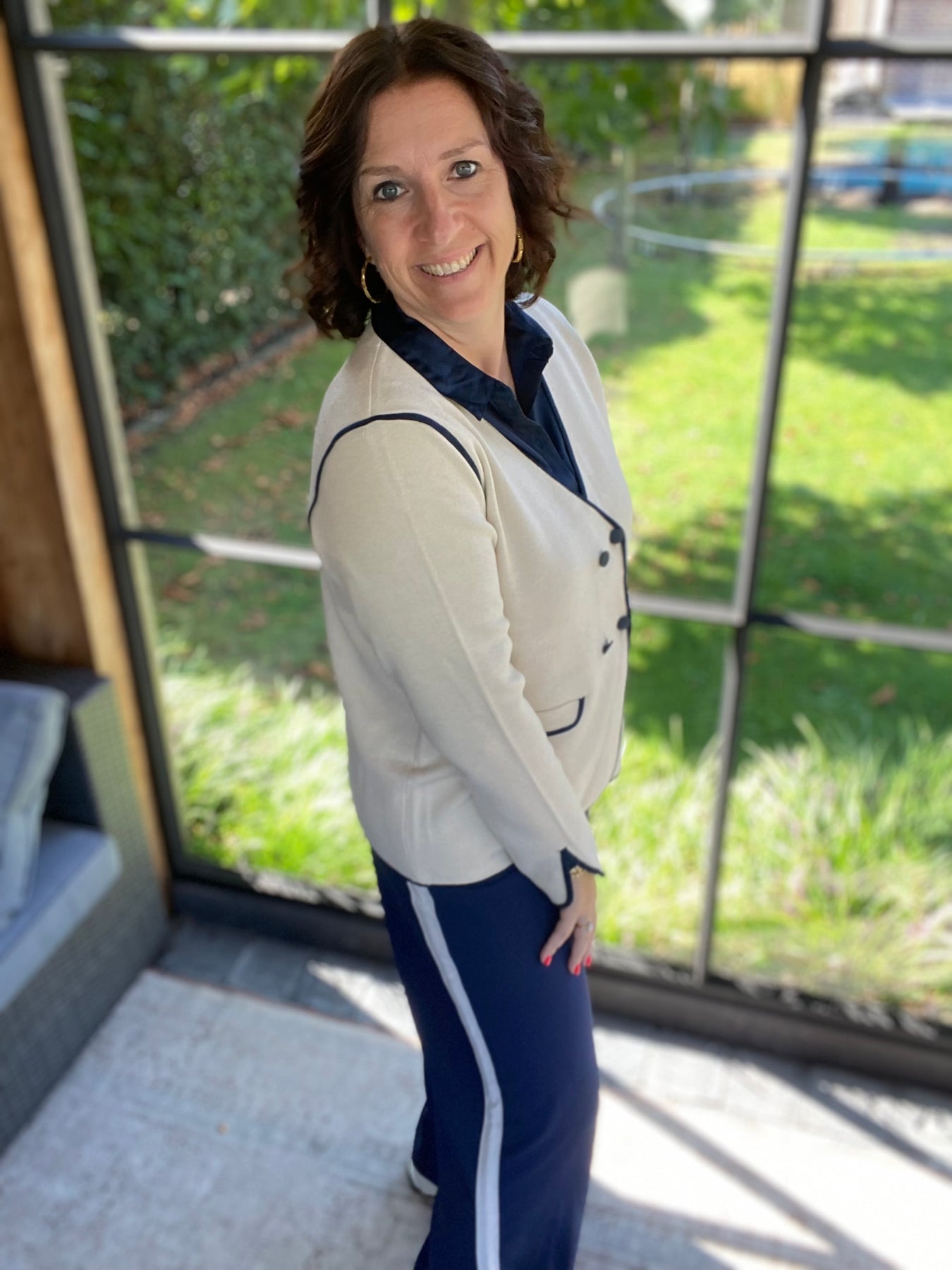 stijlvolle ecru vest JDY donkerblauwe boord