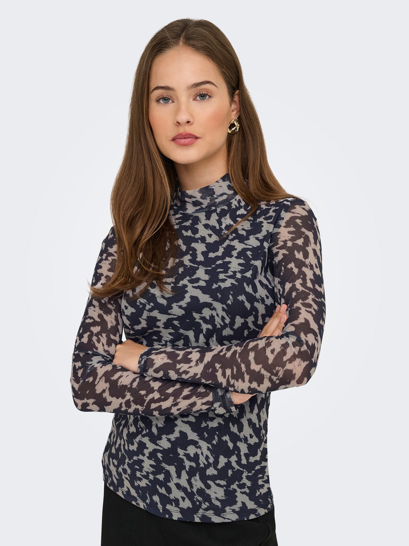mooie donker blauwe mesh top met grijs vlekkenpatroon